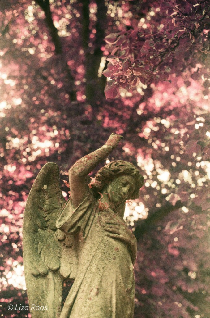 This angel, covered in moss, with a background of green leaves turned red is one of my favourite shots form the roll