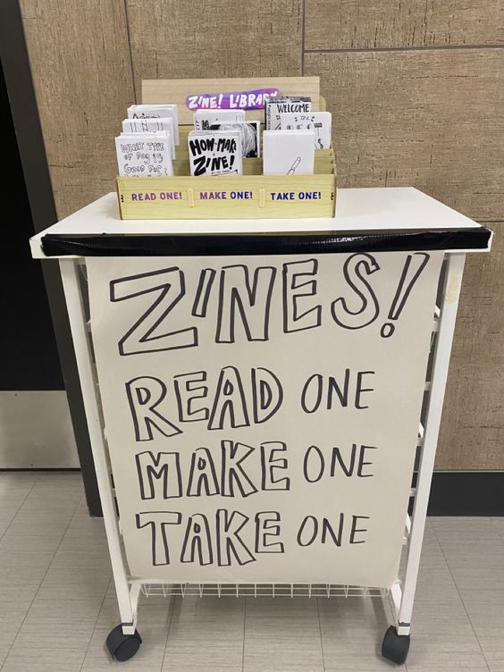 I have incorporated mini zines and have done bookbinding projects in my classes, but never as a stand alone project. I dream of creating a mini zine library where students can share their passions or advice. Or how about a mini art dispenser machine? Having a rough day? Take some art!