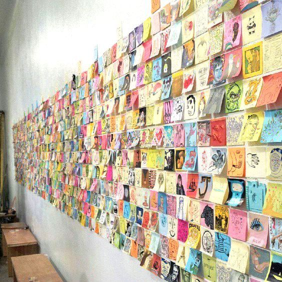 At the start of the school year, when everyone is getting to know each other (again), is the best time for a big art project. Everyone adds a self portrait and then connects to others, perhaps adding text to identify how they are connected. While drawing and painting fellow artists might have found out they share the same hobby or favourite music, or perhaps they both take Biology, or just clicked!