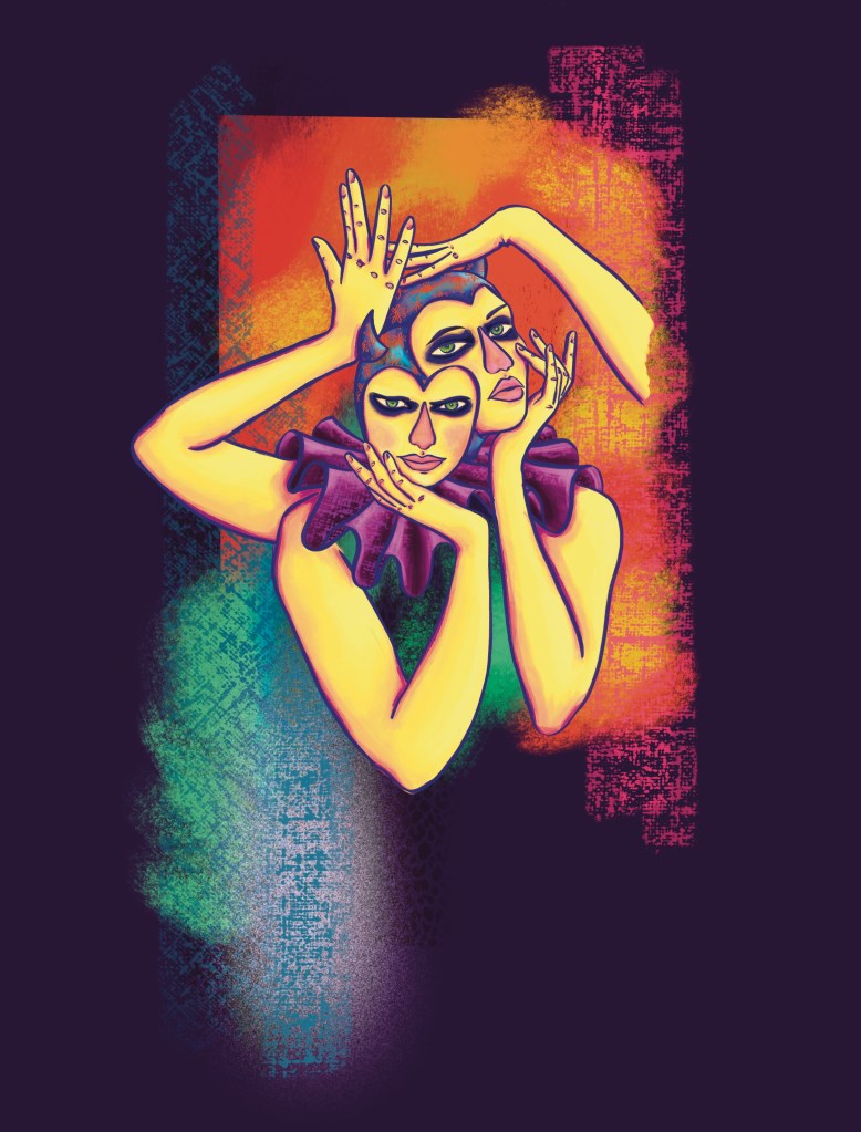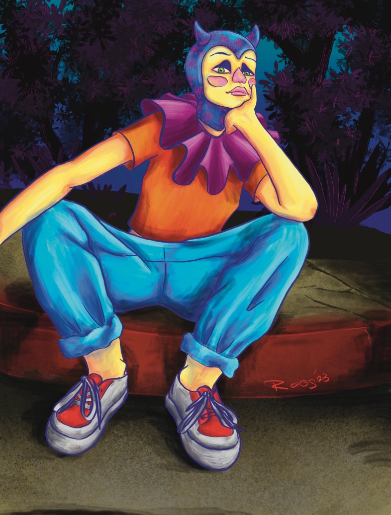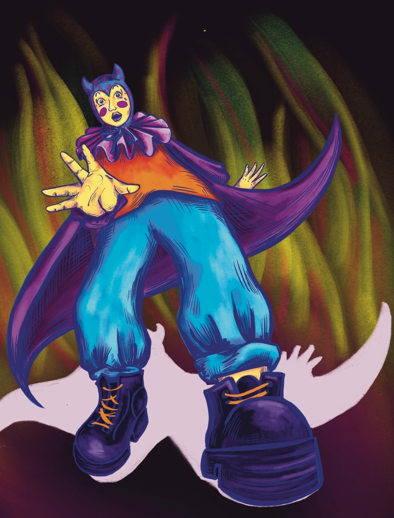 Devil Girl is a character based on my Halloween costume from 2023. I made colourful devil caps for the the teachers of the arts department and loved my costume so much I created this character.