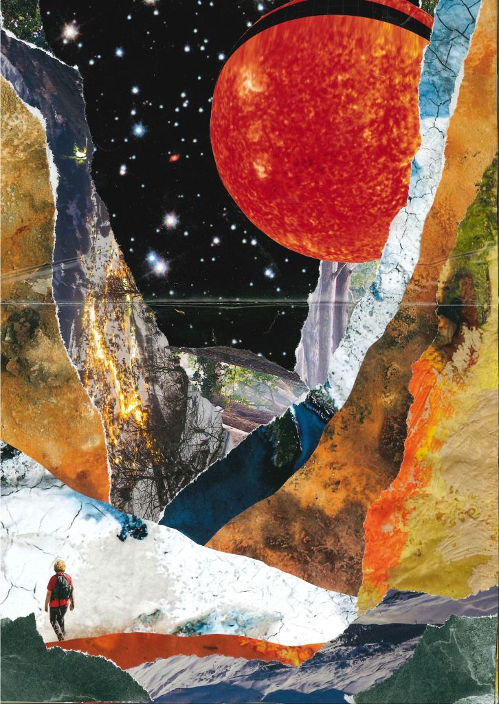 Collages make alternative worlds come to life through a fusion of text, abstract imagery, and humour. I enjoy delving into the art of layering, cutting and arranging paper to create new visual stories.