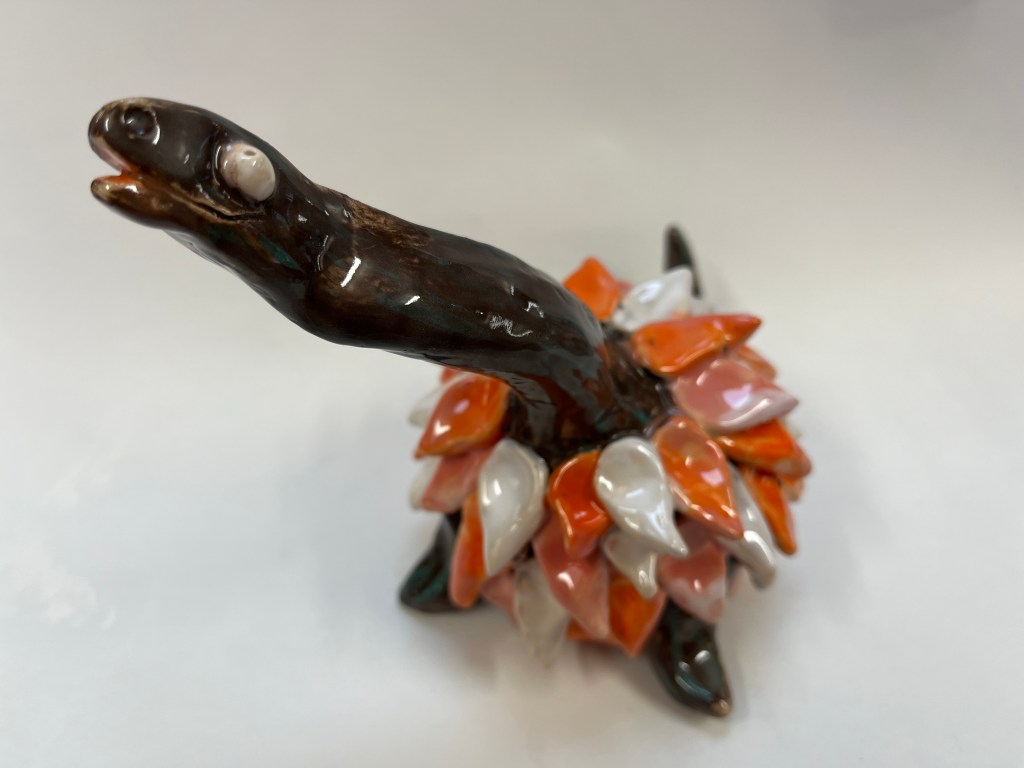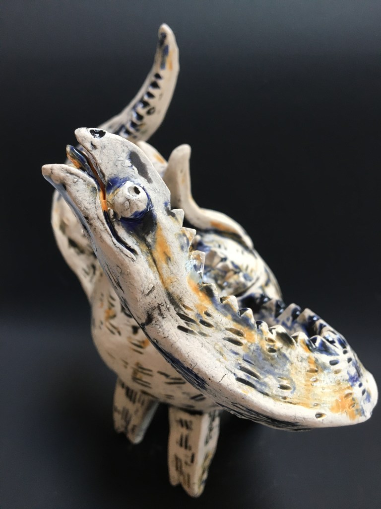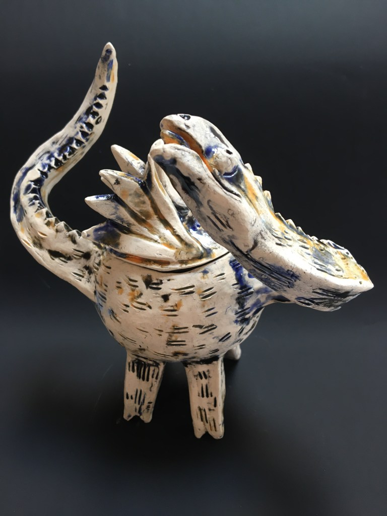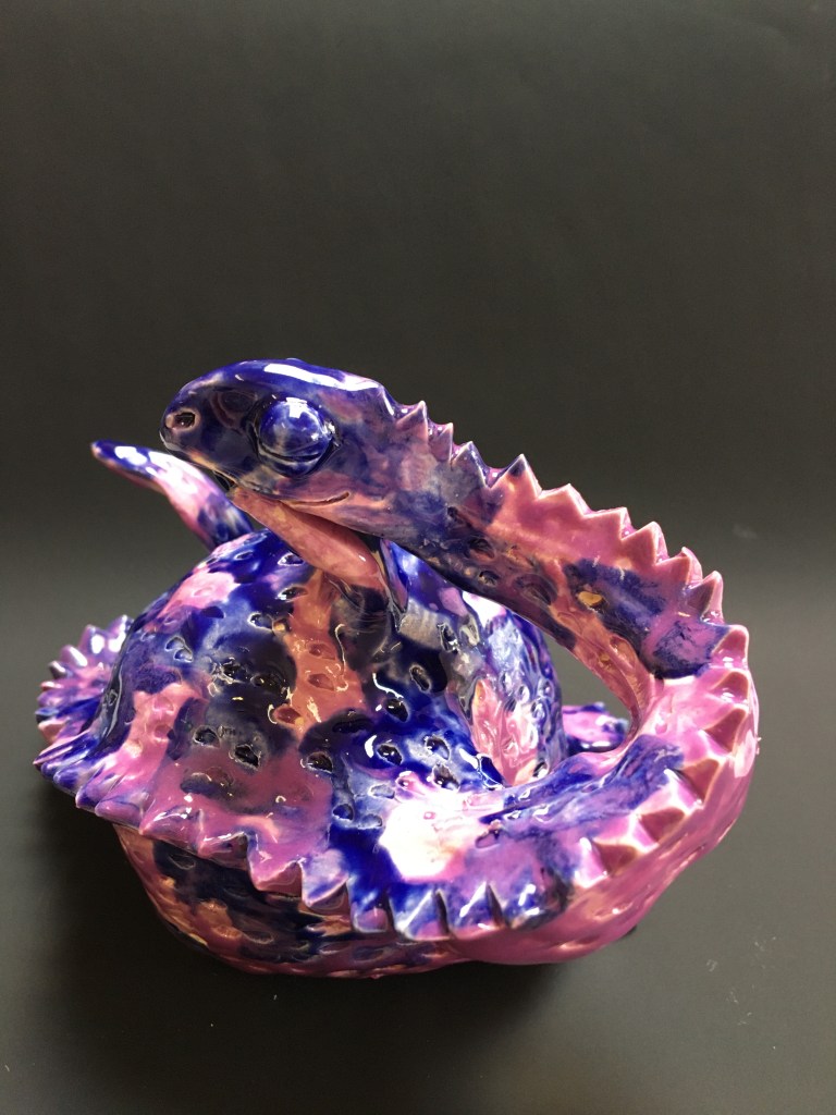 I love working with ceramics and I love dragons! Look at these cuties! They are all hollow forms created by attaching two pinch pots together, the tail and neck are formed from coils. They are glazed using Botz liquid glazes and fired at 1040 celcius.
