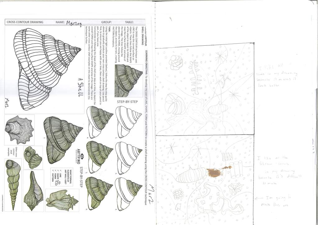 To bridge the time between early finishers and those needing a little bit more time, I gave students the challenge to make observational drawings of real shells. The enjoyment they had from just picking out the perfect shell made this exercise fun, rather than a chore.