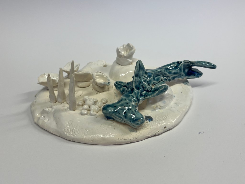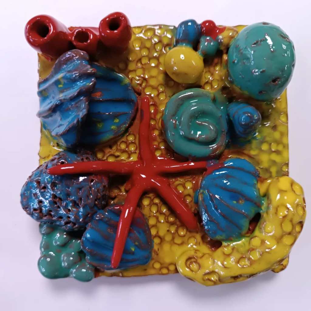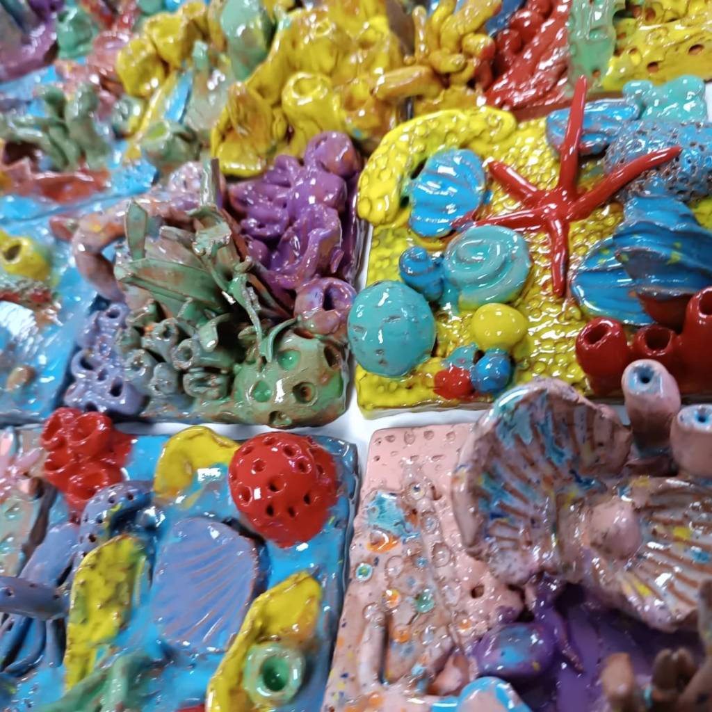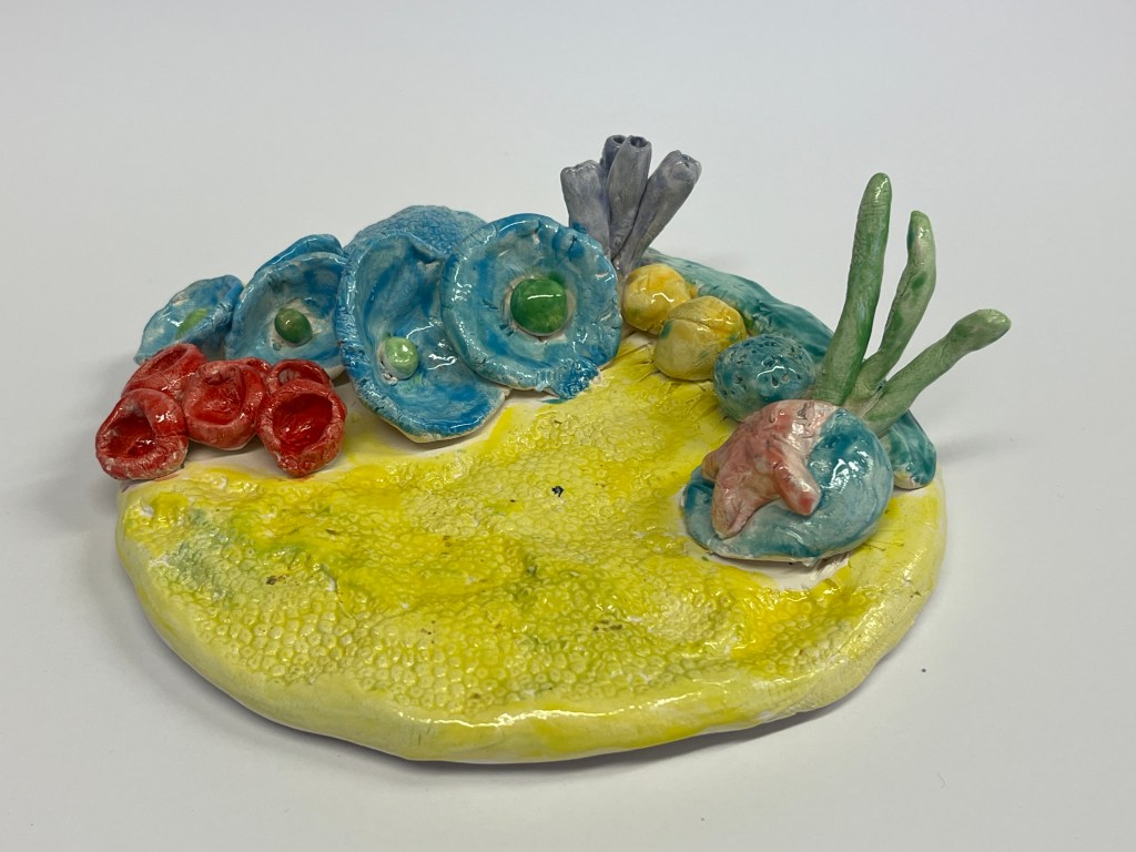 I teach grade 6 for one quarter of the year, so each quarter I see a new class. The first time I did this project, the class decided to create square tiles so they could all slot their tiles together to create a large coral reef. Also, the only clay available at the time was terracotta, which didn’t show off the glaze to its best. The second class decided they wanted to create organic shaped tiles. They also asked if they could make them a bit bigger. Of course you can!