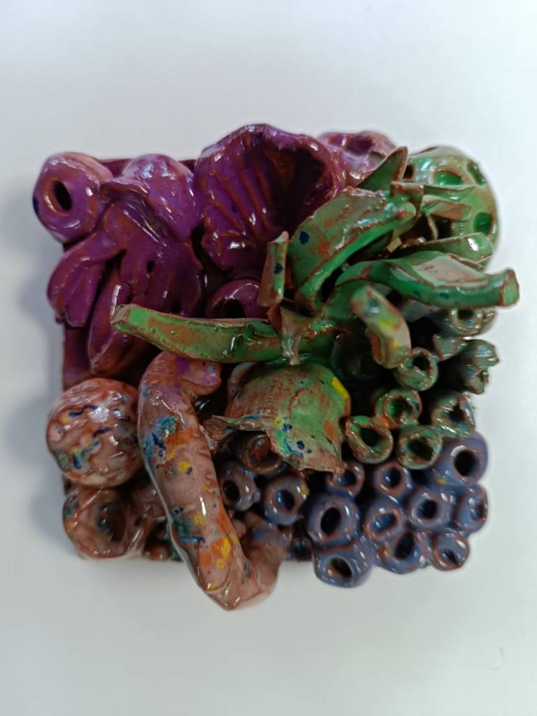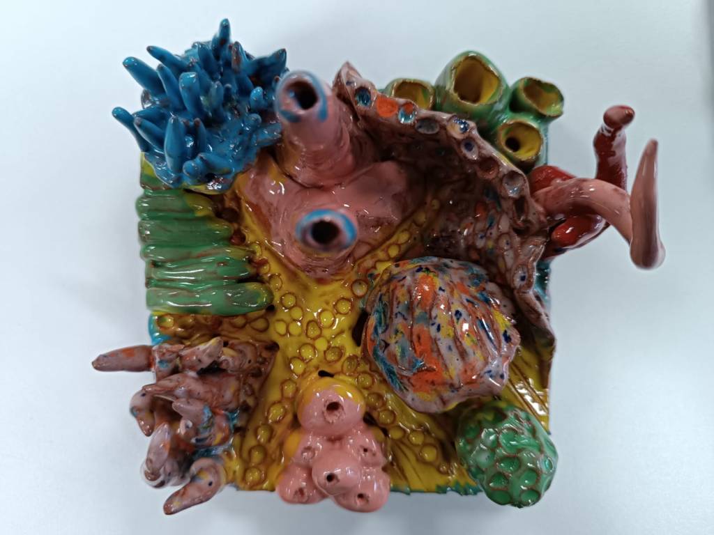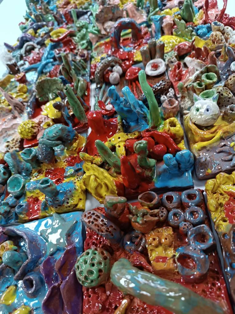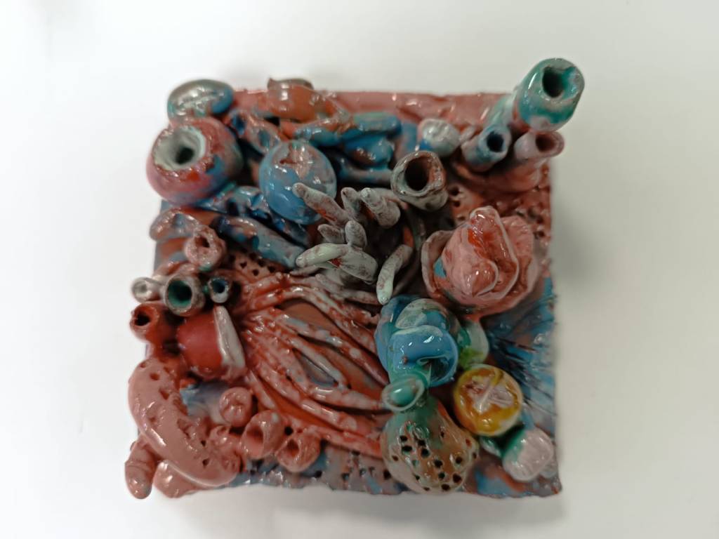 I teach grade 6 for one quarter of the year, so each quarter I see a new class. The first time I did this project, the class decided to create square tiles so they could all slot their tiles together to create a large coral reef. Also, the only clay available at the time was terracotta, which didn’t show off the glaze to its best. The second class decided they wanted to create organic shaped tiles. They also asked if they could make them a bit bigger. Of course you can!