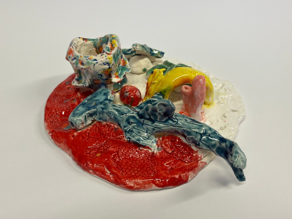To start the unit, we look at the work of Courtney Mattison and I ask students what they notice and what they think these works mean. From there a conversation about the formal qualities (especially form, proportion, colour) and the environment arises.