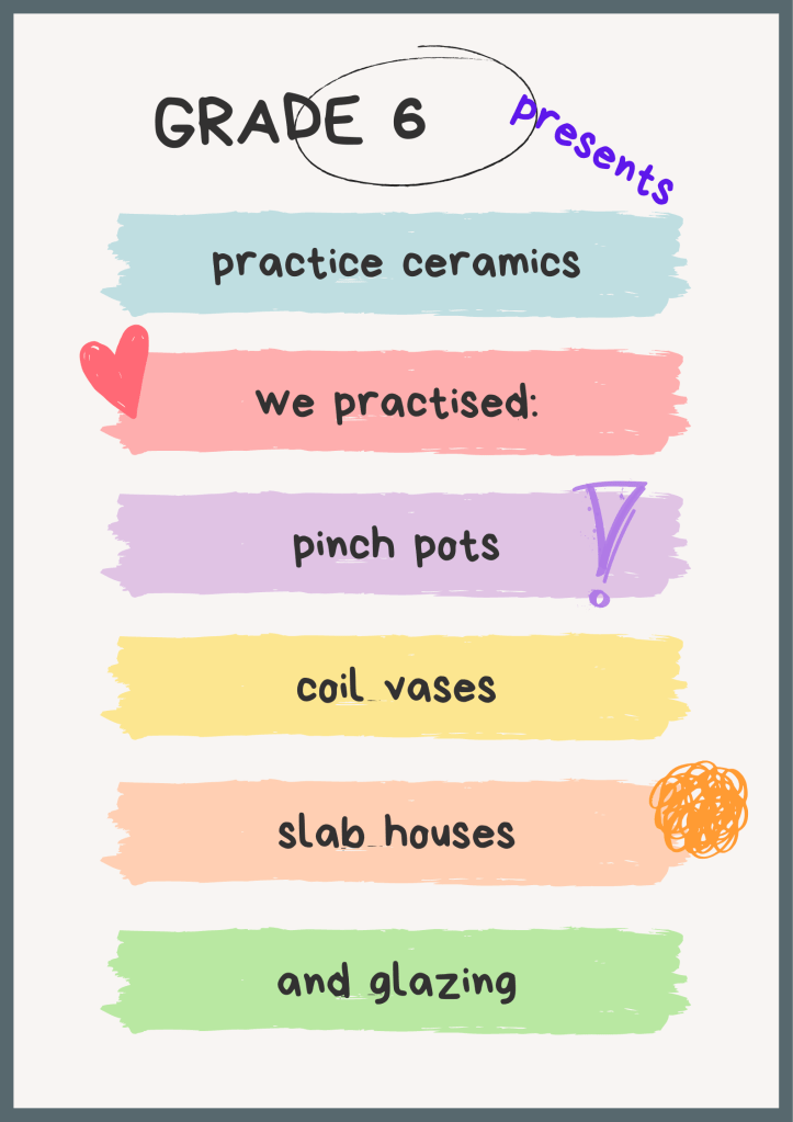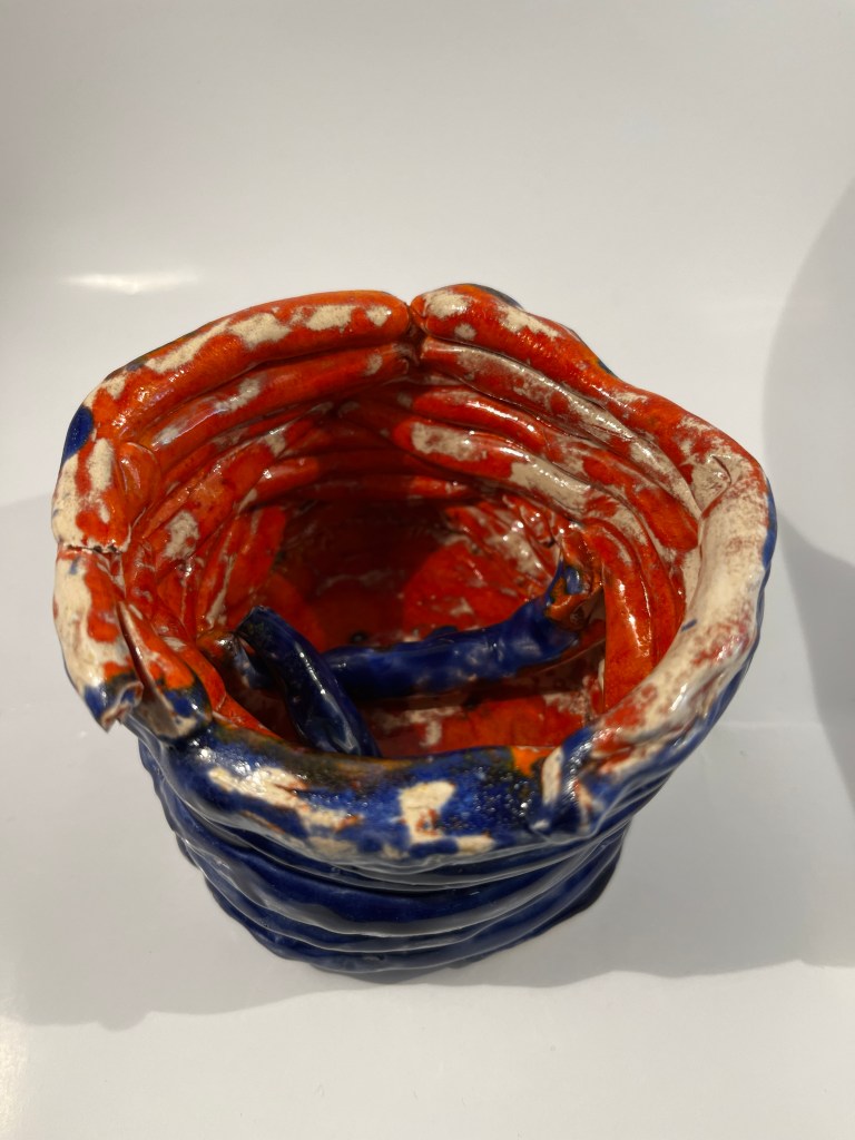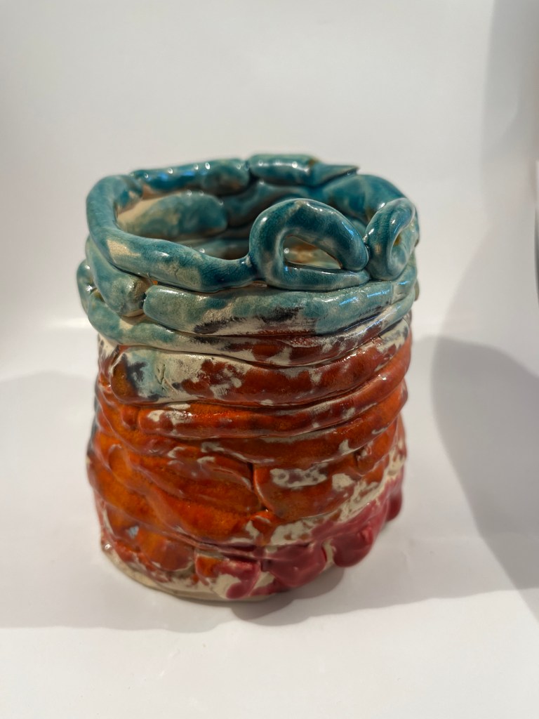 The next exercise is to practice making coil vessels. We focus on how to make proper attachments using scoring and slipping. I challenged the students to build as high as they could and some were able to create coil vessels as high as 20 cm! Others tried to use different forms of colds or to use them in imaginative ways.