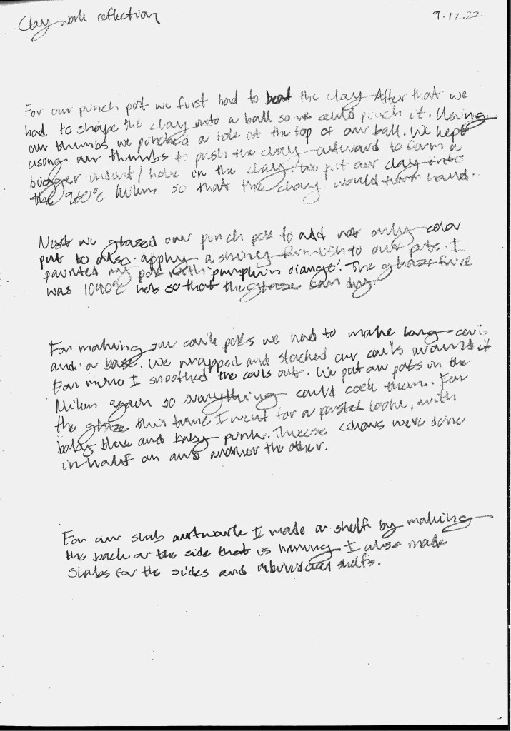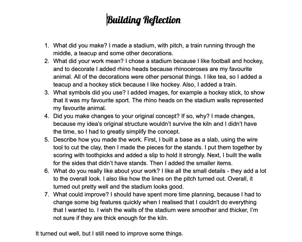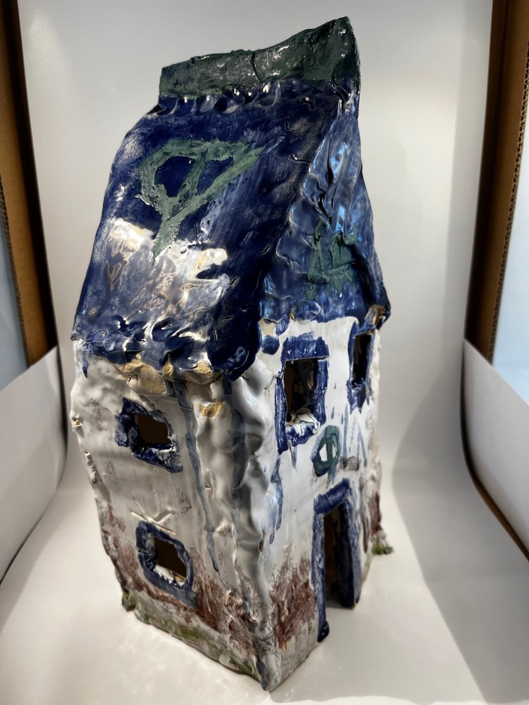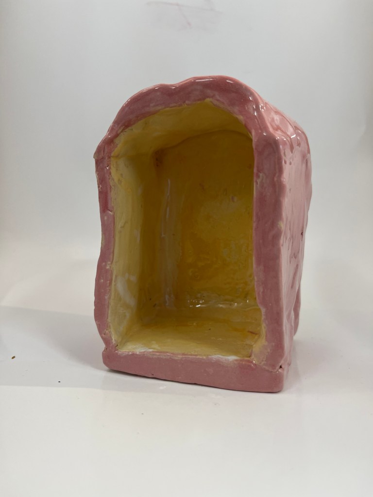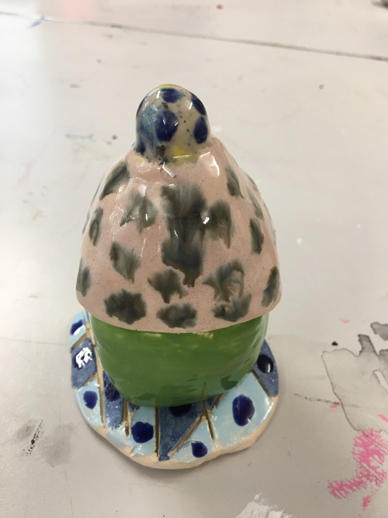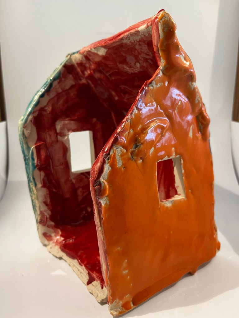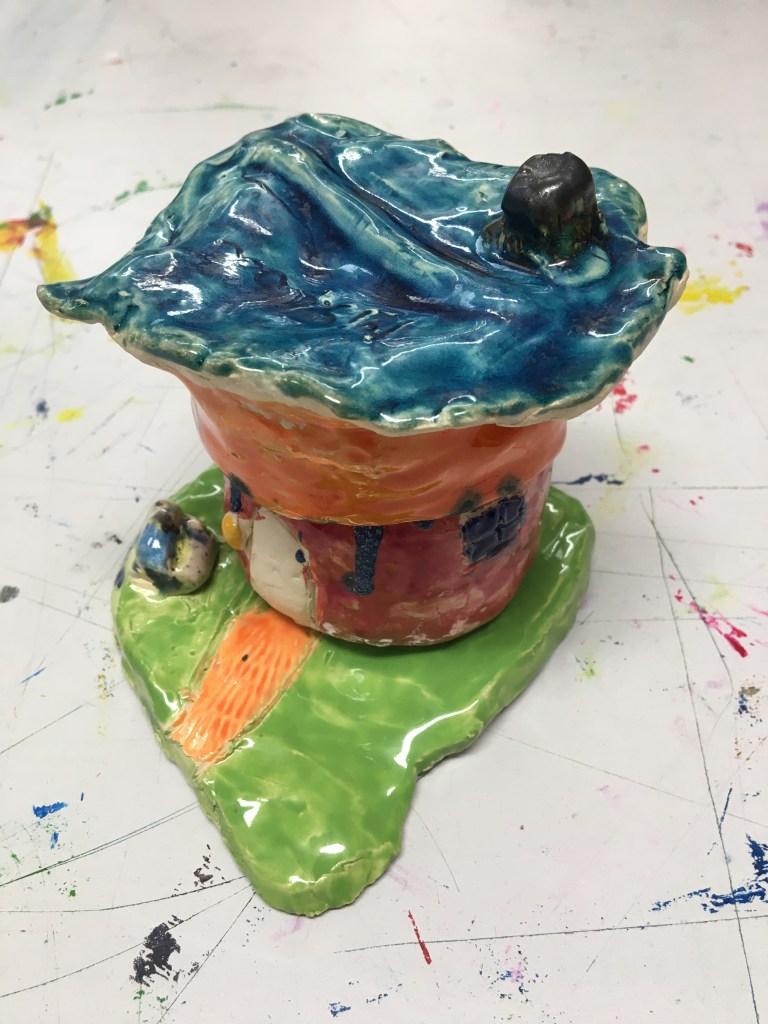 Our final practice piece is with slabs, not an easy technique! What’s more, due to a school trip and a holiday, the slabs sat waiting for three weeks, making them almost bone dry. Despite the difficulty to work with such hard slabs, almost all students were able to attach them together to create their little shelfs and houses.