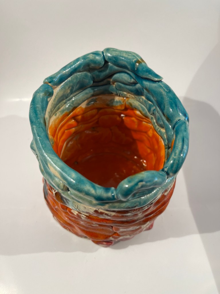 The first exercise is making simple pinch pots giving the students the change to get familiar with the feel of the clay and some basic principles. We focus on “beating” the clay, how thick clay walls should be, adding textures and patterns.