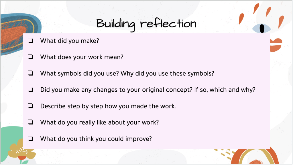 Students create a sculpture for an exhibition which explores the group’s and individual’s culture and identity through symbols, patterns, and colour.