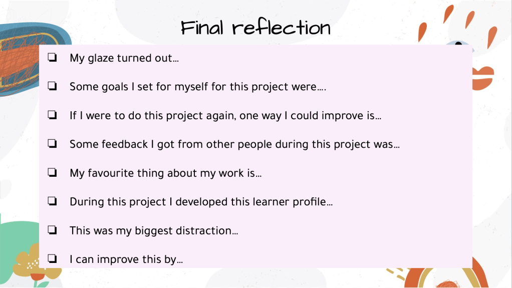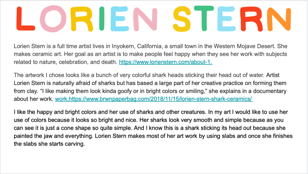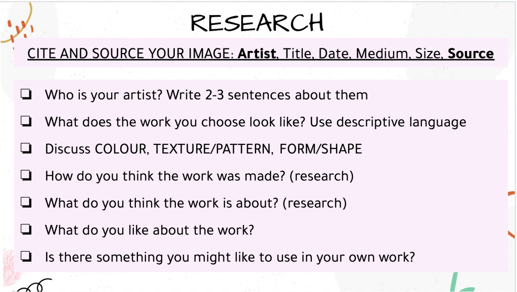 NB. This unit offers room for adjustments depending on student inquiry, such as group work or mixed media pieces. Students must always justify their design/inquiry choices.