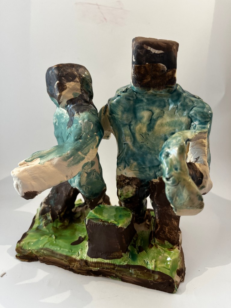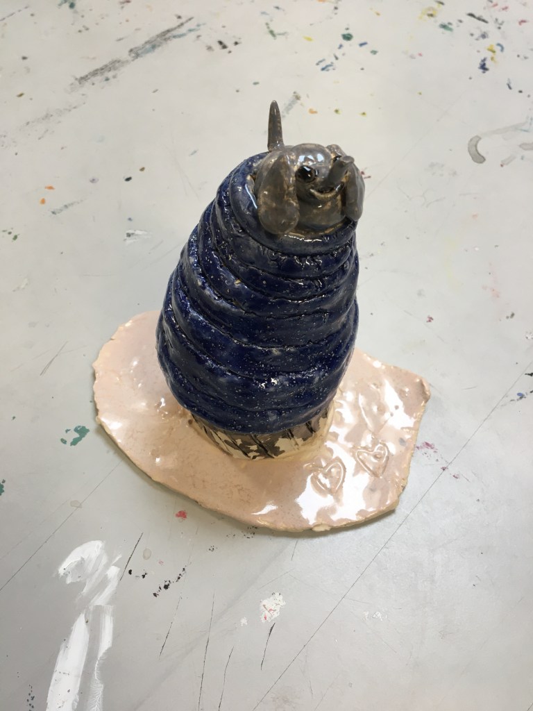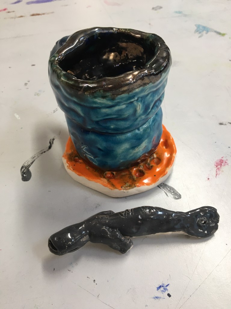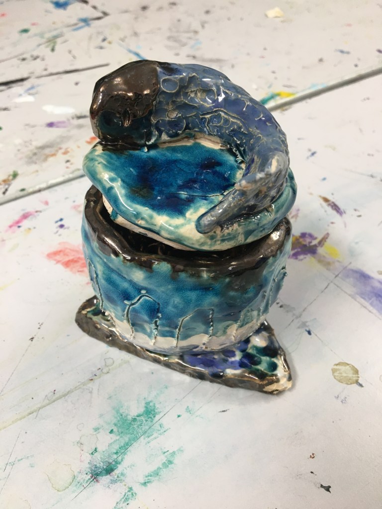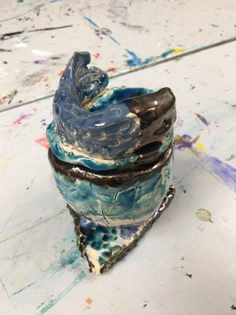 Students use what they have learned in the skills building phase of the unit to create a sculpture using a variety of building, sculpting, and glazing techniques.