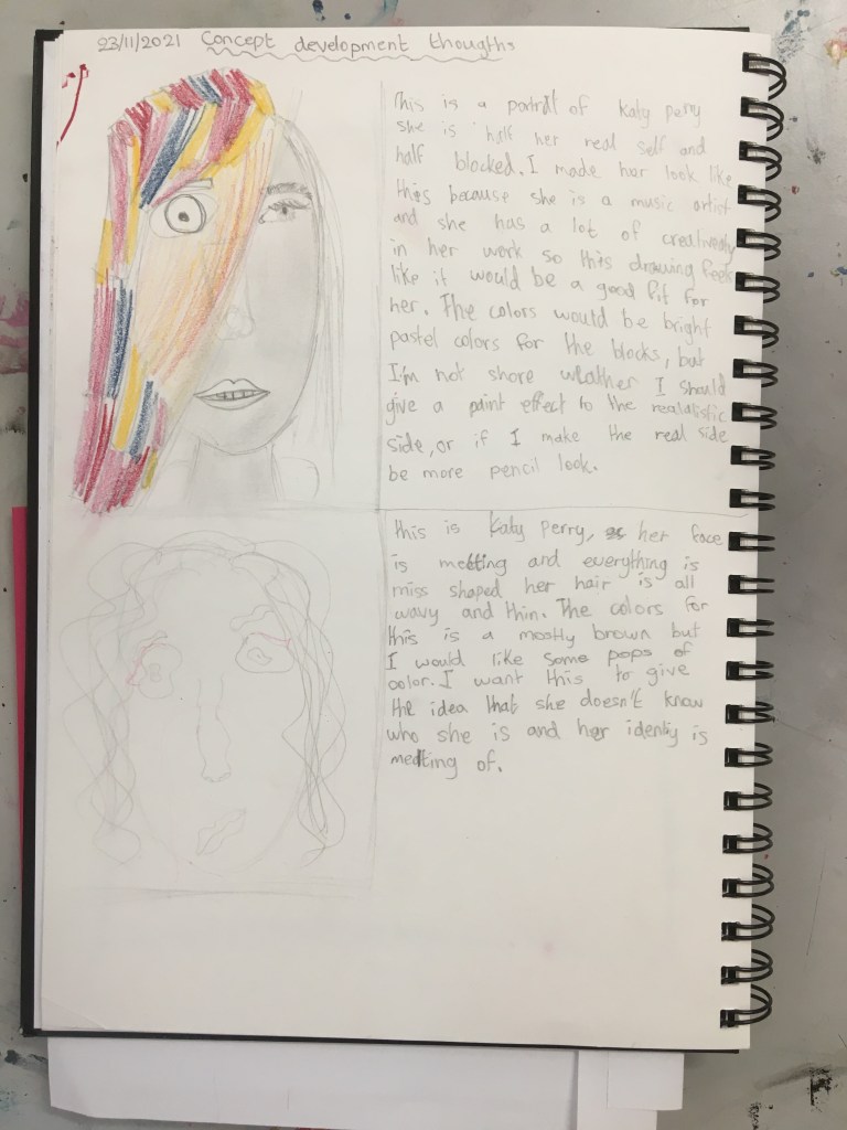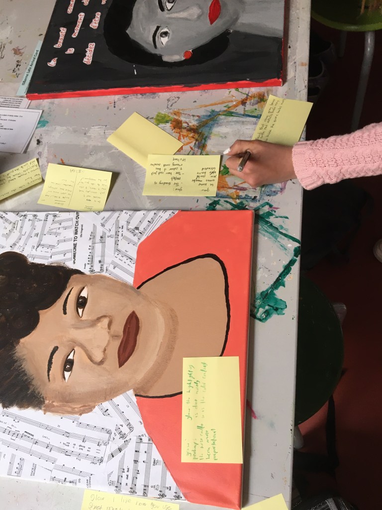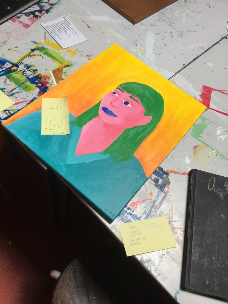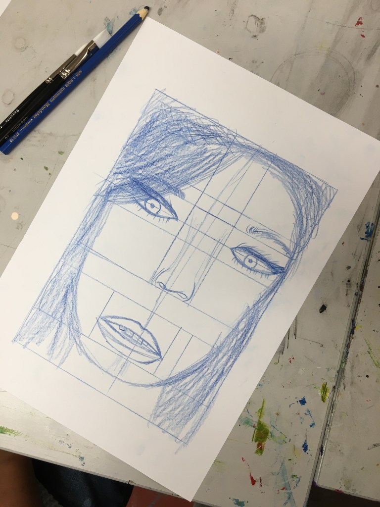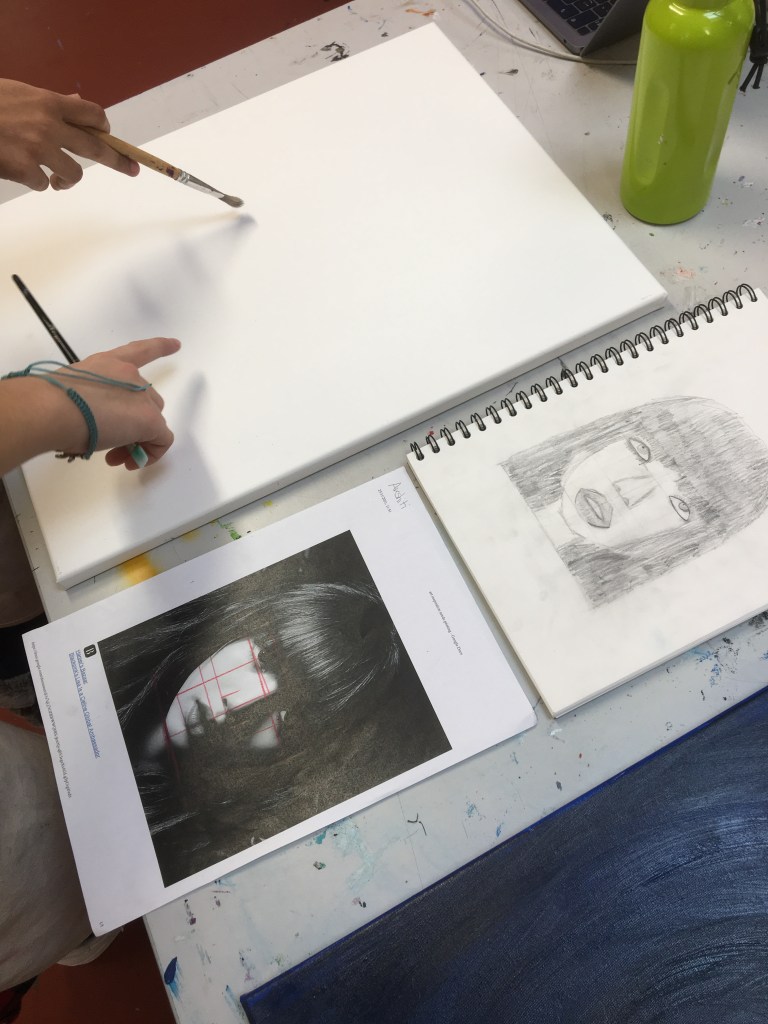 Although we practice and explore portraiture during the skills-building phase of the unit, students do not have to create a classic portrait and may work in any style that they feel best represents the person they are focussing on. This has resulted in some very abstract works where concepts and technique were at the forefront.