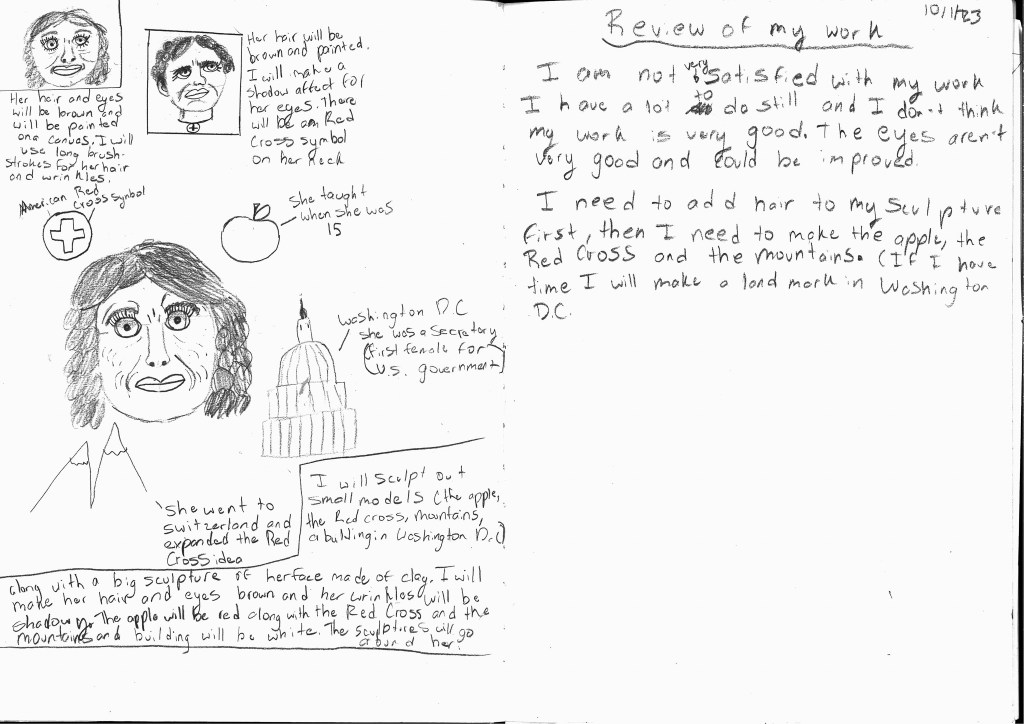 Students study drawing, painting, and sculpting portraits and a variety of artists. The focus is people who made a difference in our lives, some have never had recognition for the contributions they have made. Then students create a portrait of their chosen person in any media that suits their intention.