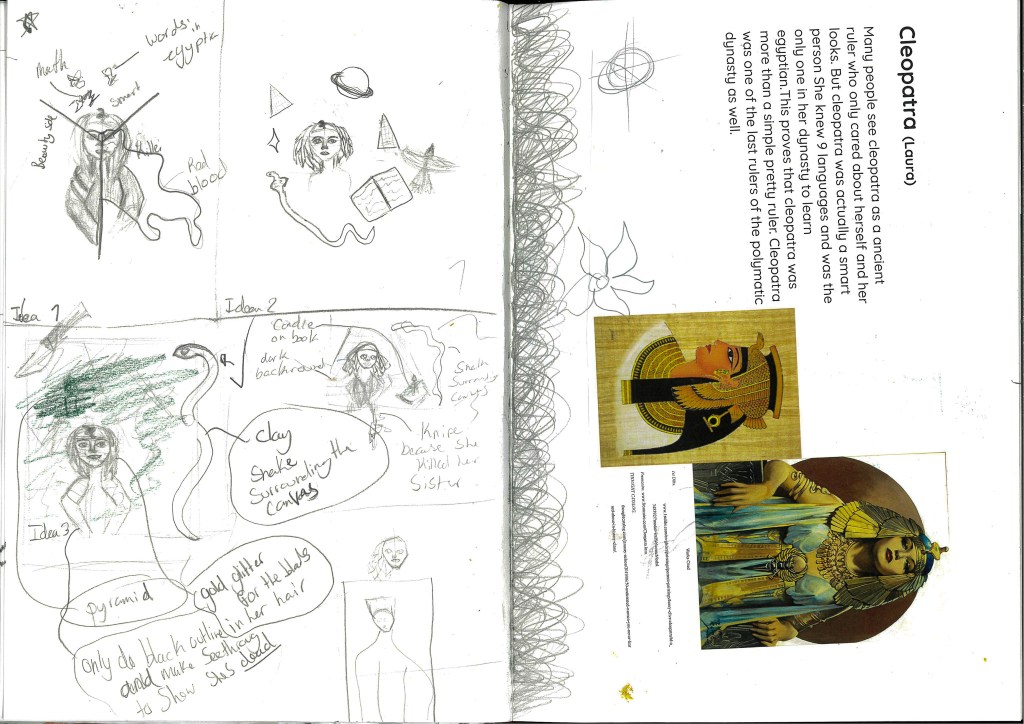 At least 3 alternative ideas, sketches, reference images (cite all images that are not yours), notes explaining all your ideas - Choose your favourite idea: make a larger more detailed sketch, add additional notes, what is so special about this idea?