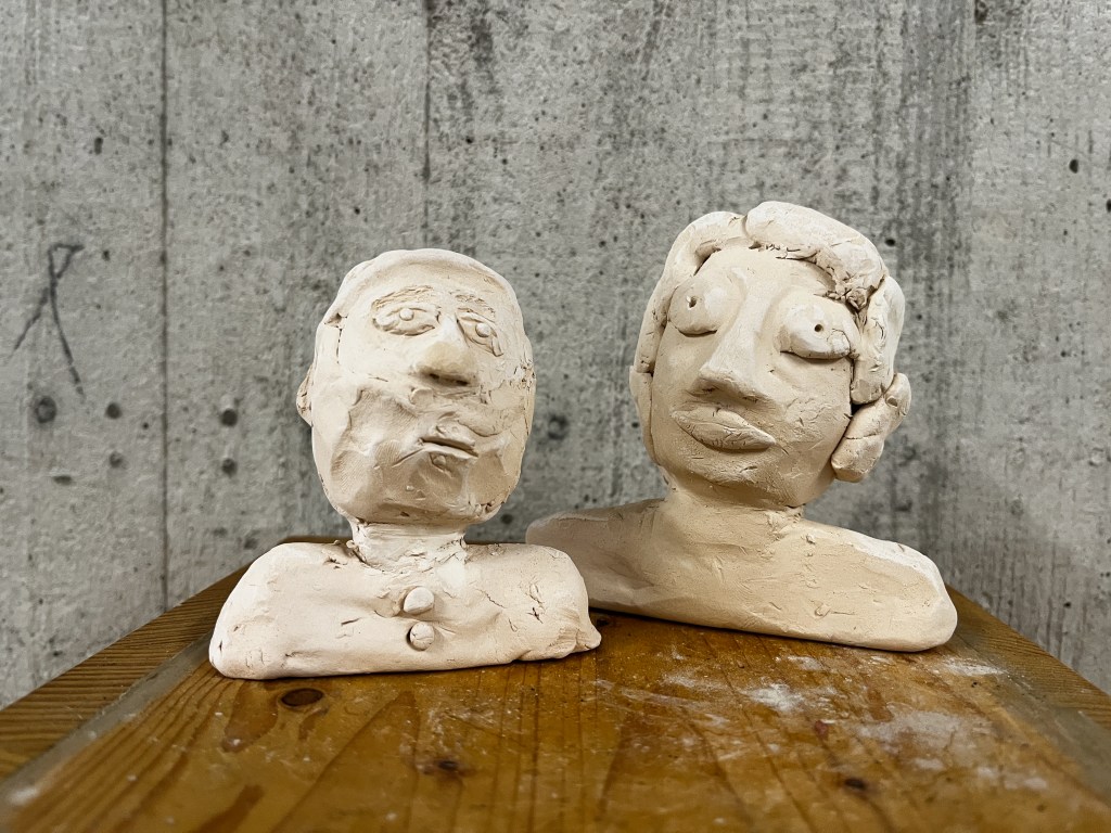 During the skills building phase students practice with pencils, watercolour – and acrylic paint, clay and cardboard.
