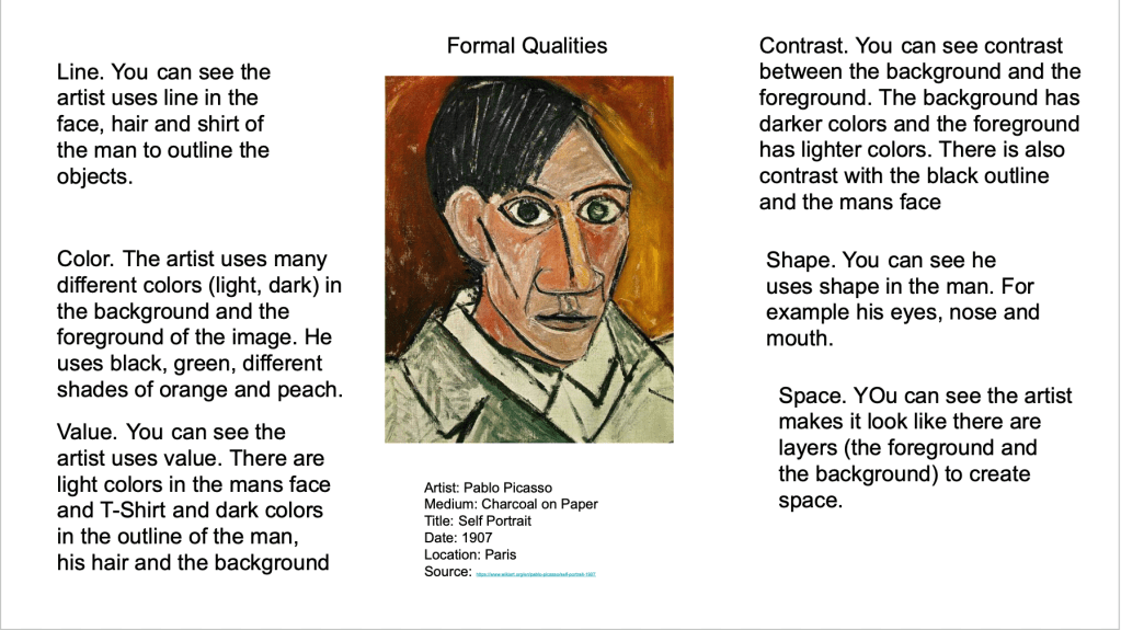 - Identity and describe the relevant formal qualities