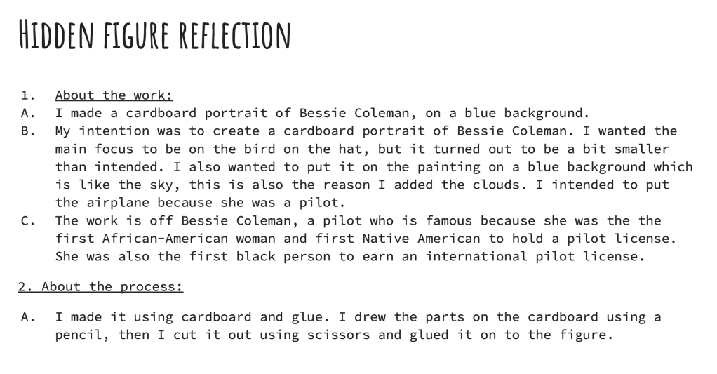 The goal is to next year make this collaboration more formal by having the students write about their chosen subject after research and present this together with their sketches and artworks.