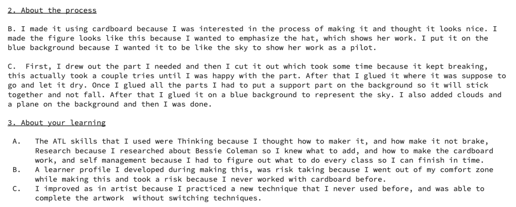 Criteria D: Reflecting