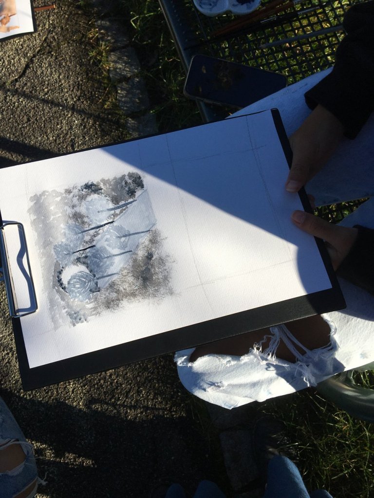Watercolour exercise: Monochrome landscapes – painting outside