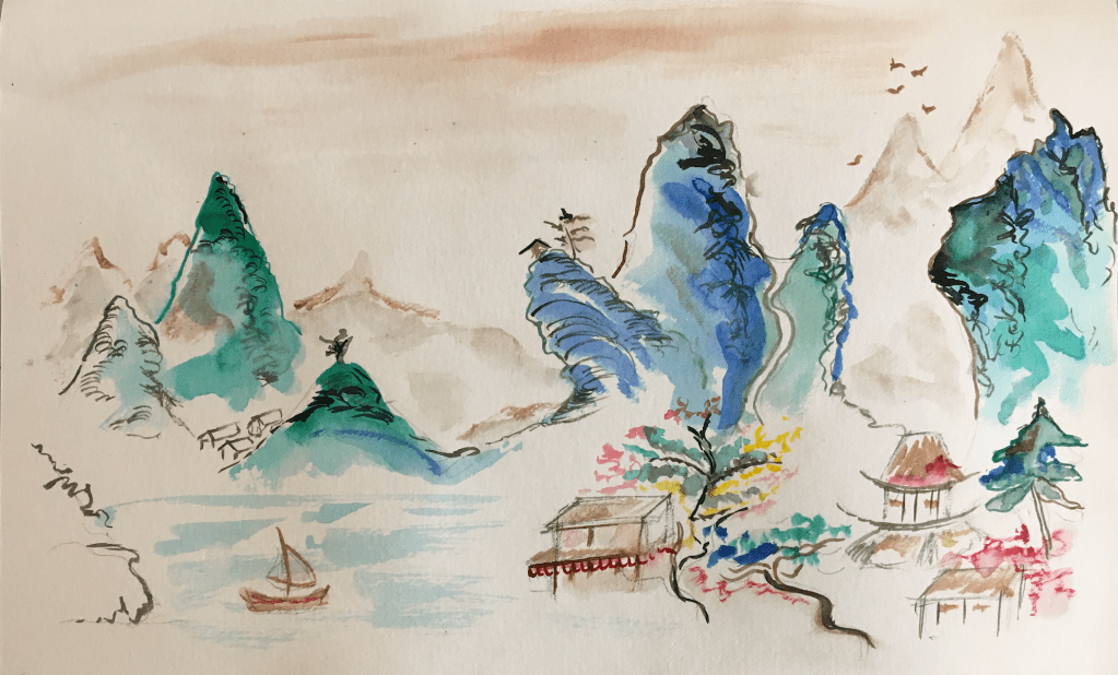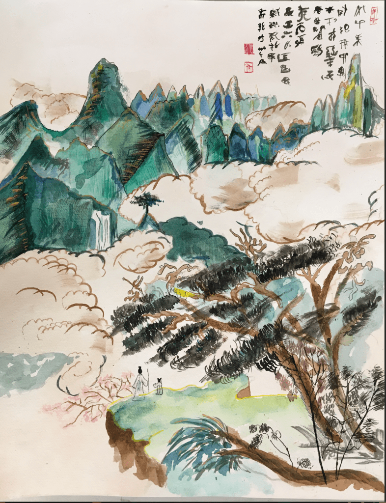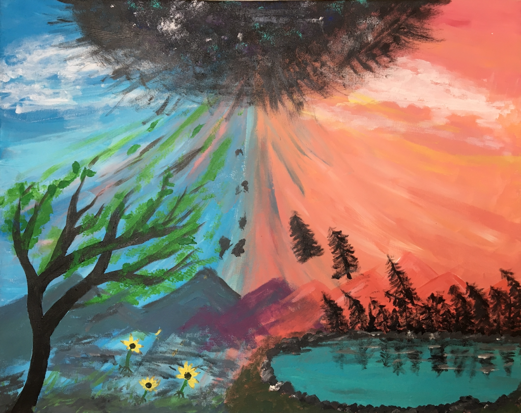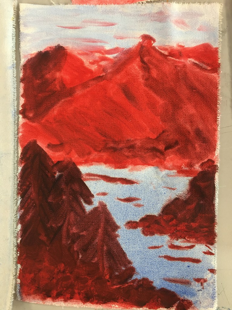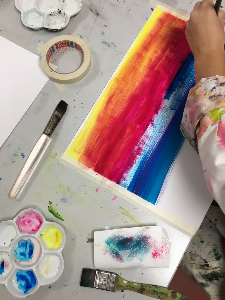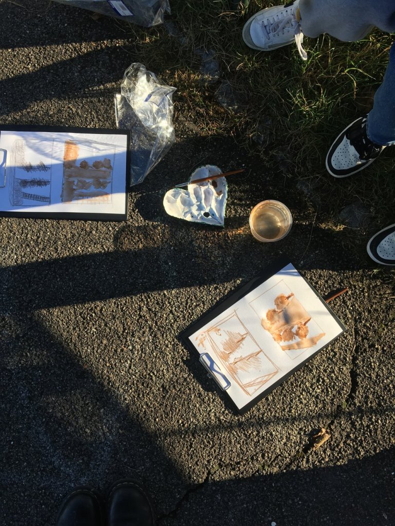 Students first practice working with atmospheric perspective through progressively more complex exercises which range from landscape sketches, watercolour compositions, and acrylic and oil paint experiments.