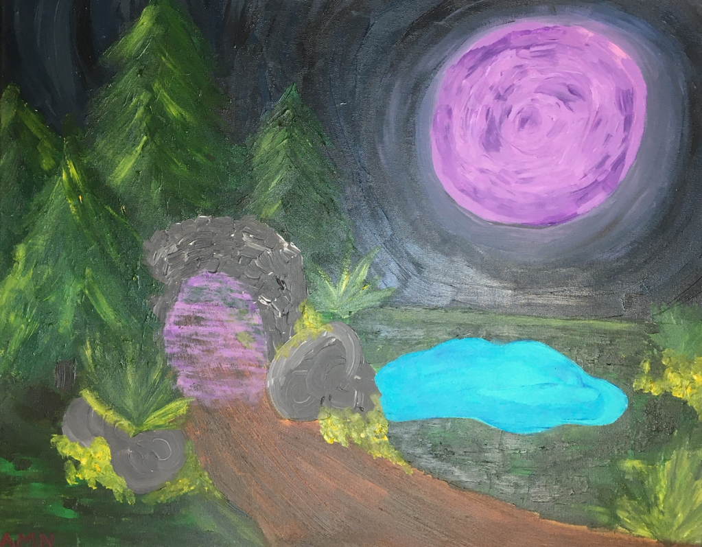 The final work can be either on paper or canvas, acrylic, watercolour, oil or acrylic paint, mixed media or digital depending on the concept and desired effects.