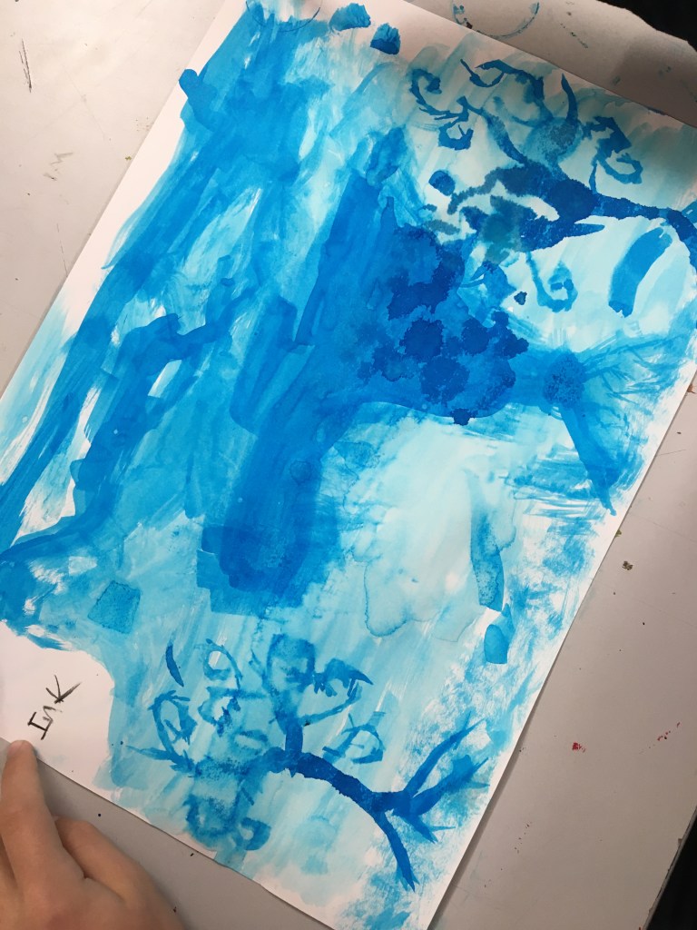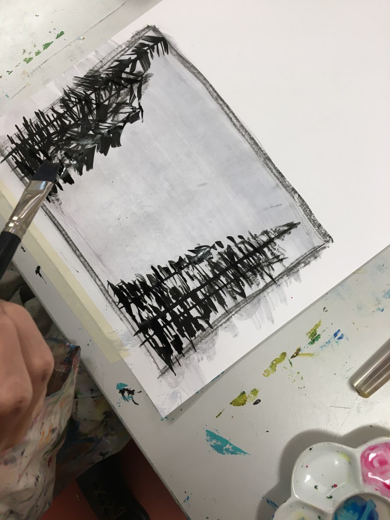 I use a document camera to demonstrate the techniques (two or three at a time) and then let students freely explore the media, reminding them that we are not aiming for perfection or beauty but for experimentation.