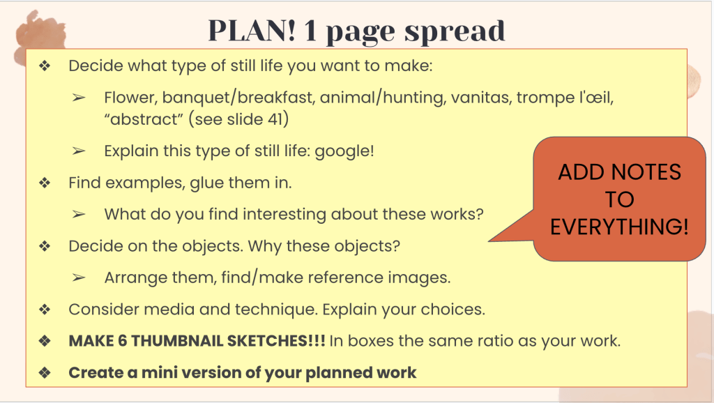 I know still life units can feel a bit old fashioned, but it is such a great way to get students to work from observation and to get continue to hone their art analysis skills.